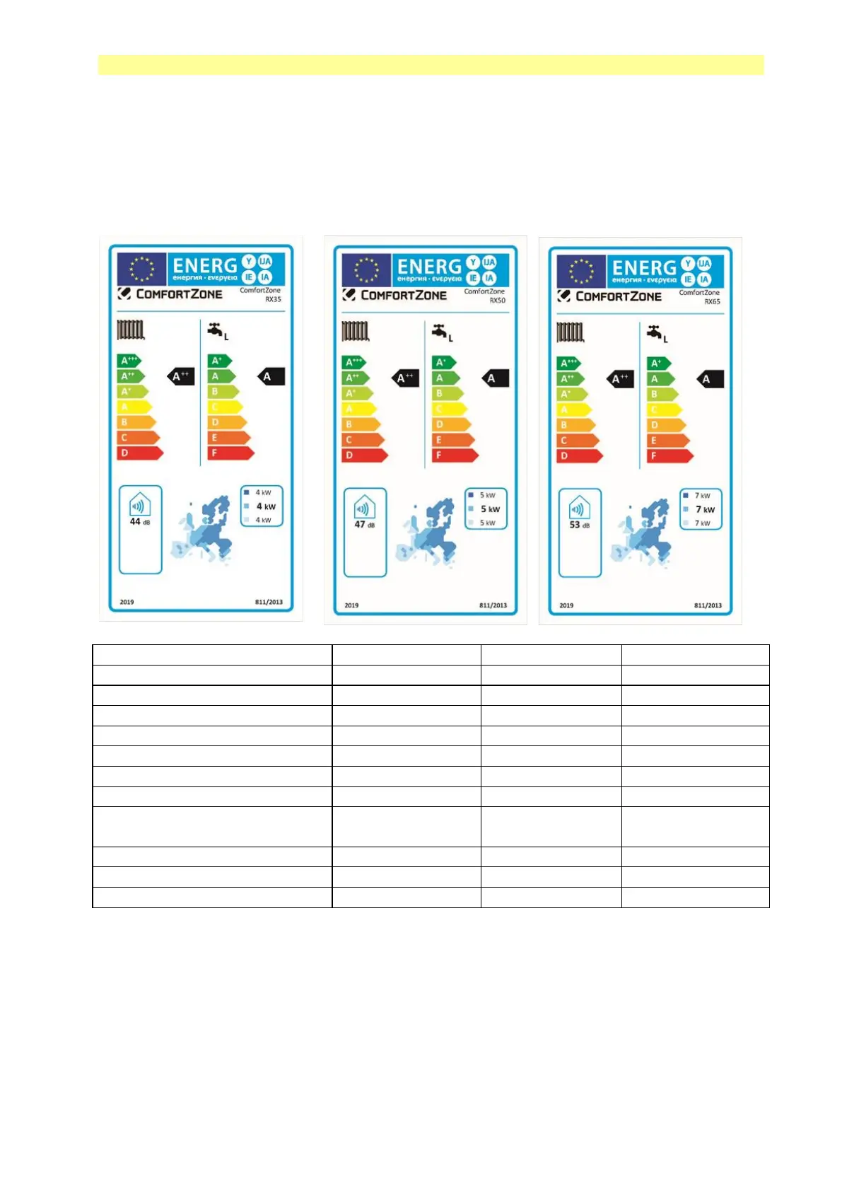 Energy declaration ComfortZone RX35 / RX50 / RX65