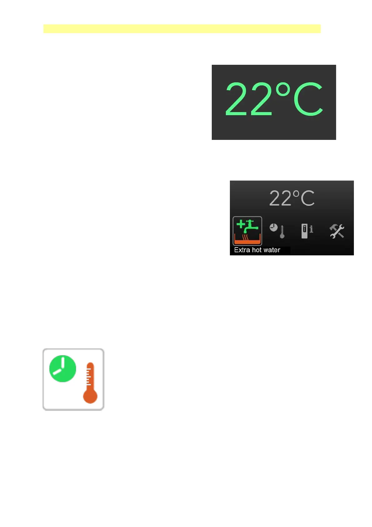 ComfortZone RX35 - Settings during operation; Display; Extra Hot Water; Temperature;Time