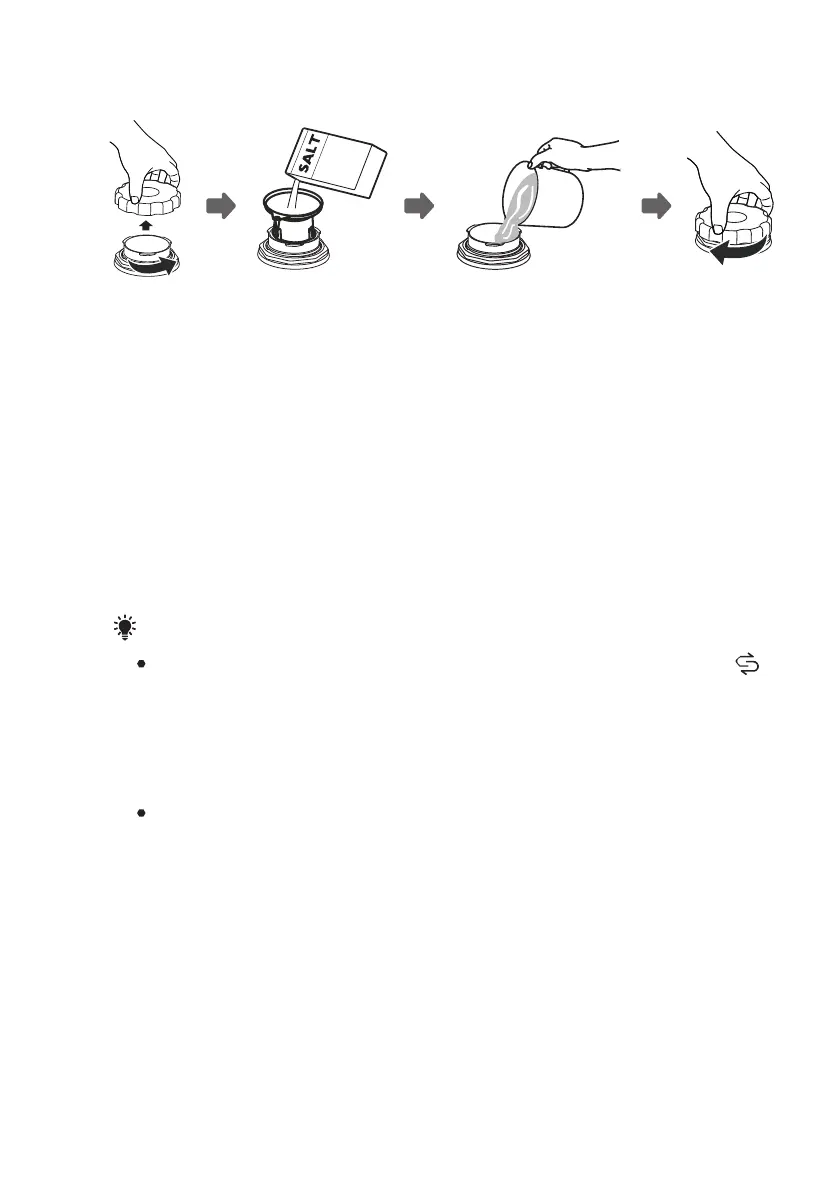 Der Salzbehälter darf nur dann nachgefüllt werden, wenn die Salzwarnleuchte ( )