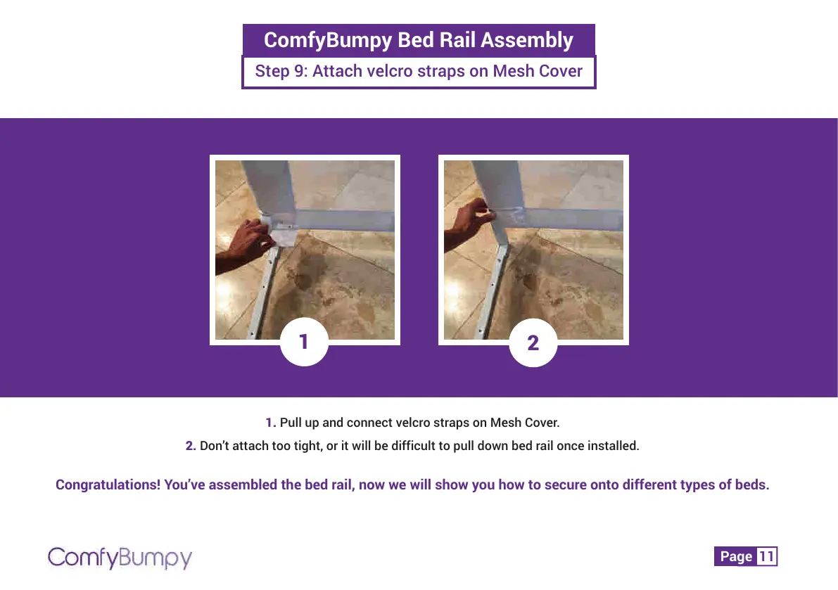 Congratulations! You’ve assembled the bed rail, now we will show you how to secure onto different types of beds.