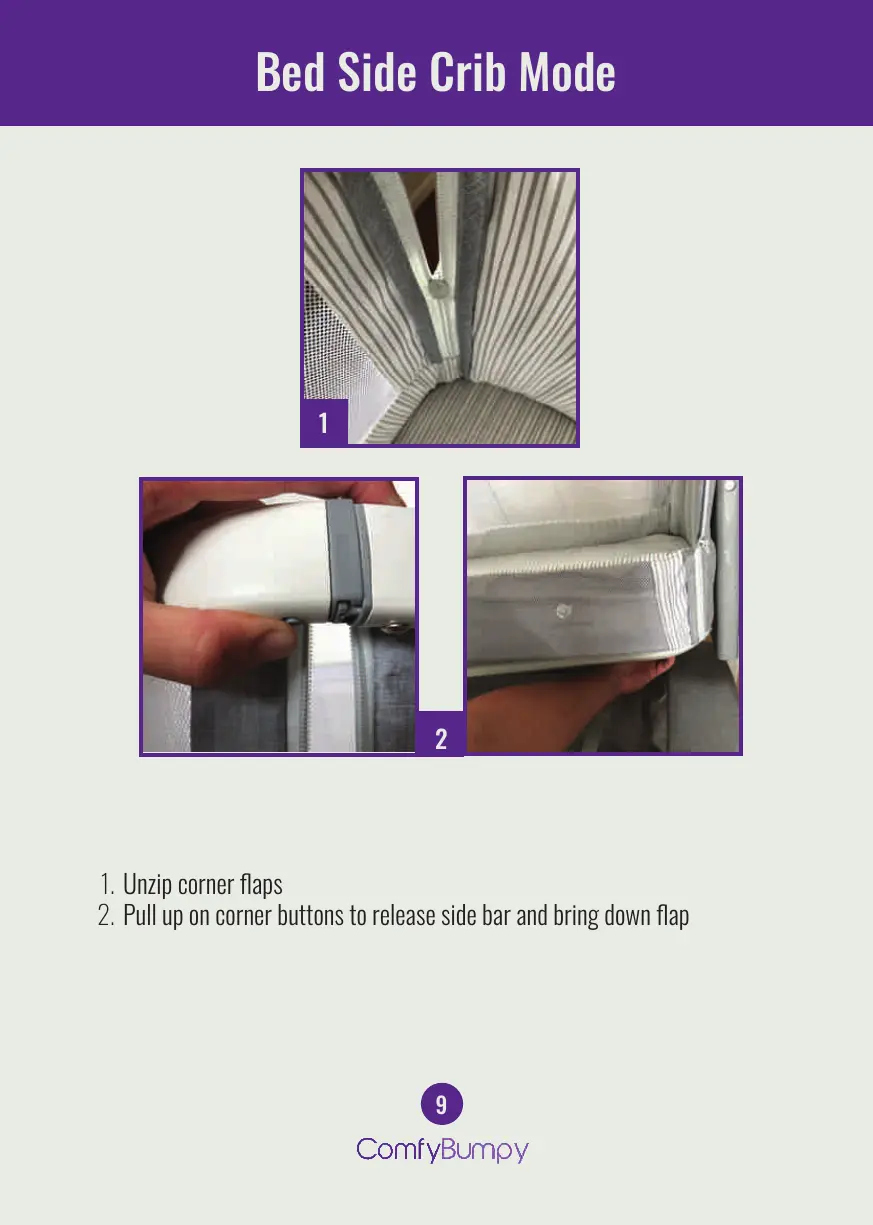 ComfyBumpy BEDSIDE CRIB - Bed Side Crib Mode Operation; Connecting to Adult Bed
