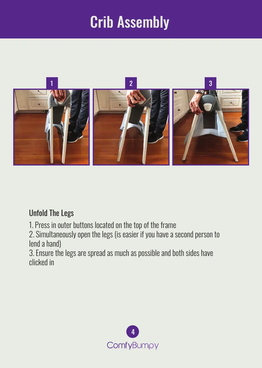ComfyBumpy BEDSIDE CRIB - Crib Assembly: Unfolding the Legs; Unfolding the Legs