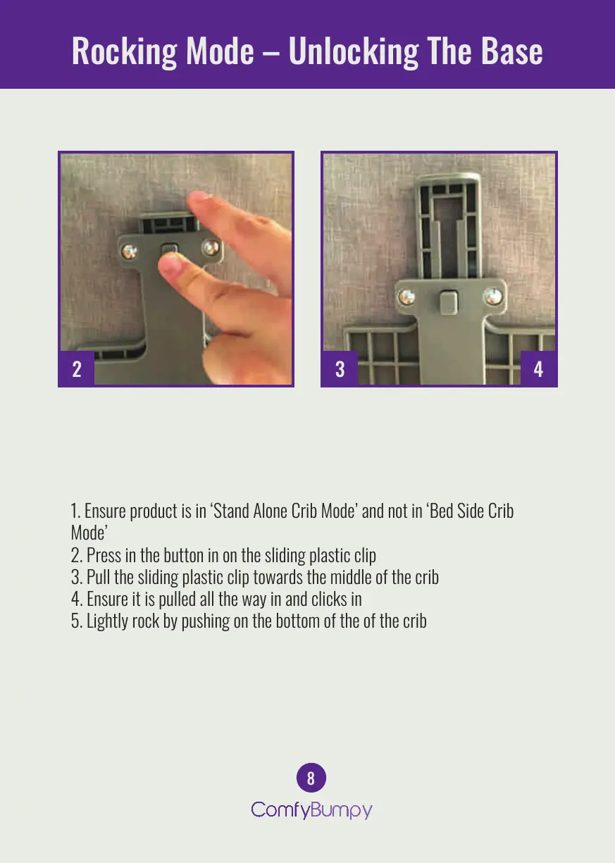 1. Ensure product is in ‘Stand Alone Crib Mode’ and not in ‘Bed Side Crib