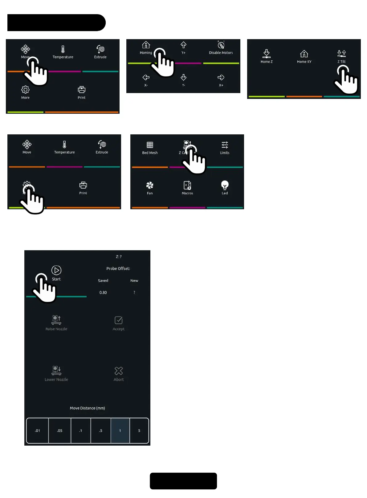 1. Click *Move* on the home page. 3. Click * Z Tilt*. The machine