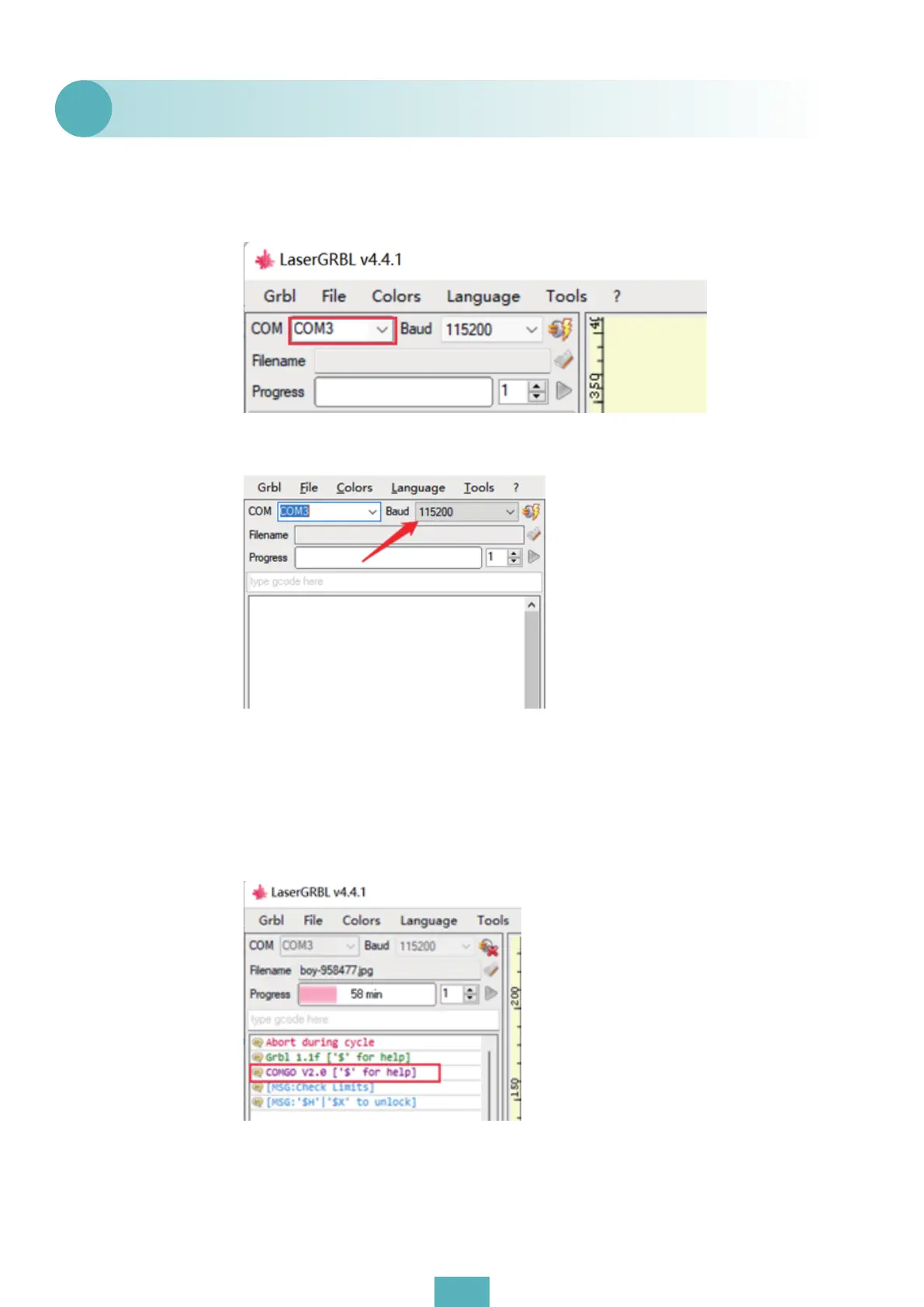 COM port in GRBL, and you can also choose other ports to try to connect. As shown in the figure: