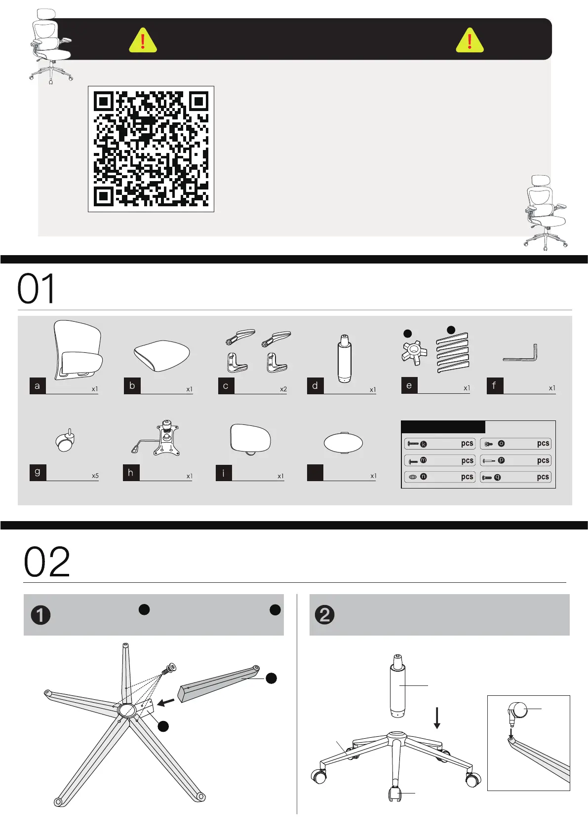 Insert the casters and install the gas lift.