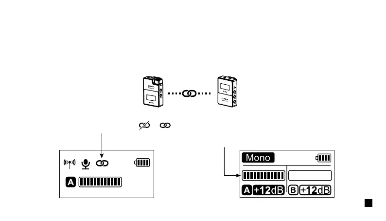 Turn on the transmitter and receiver within one meter, and then press the pair button for pairing when the transmitter screen is