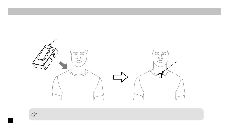 Install the transmitter on the collar through the belt clip so that the internal microphone points in the direction of the sound source.