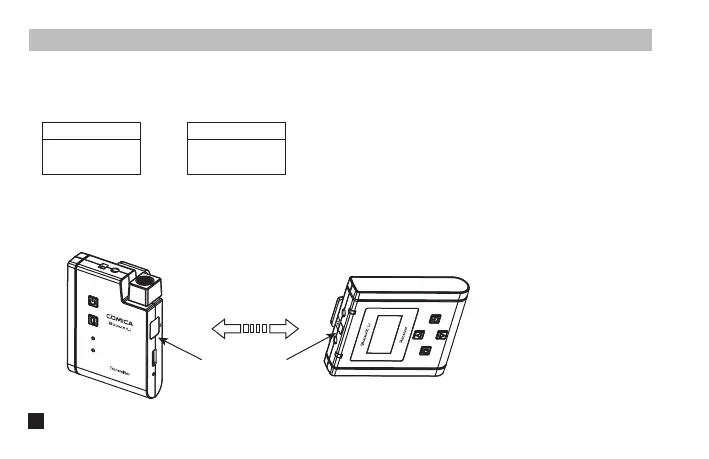 Comica BoomX-U - Pairing Method; 1. Set the display page to A;B Group Pairing; 2. Keep the receiver and transmitters IR sensor are closely aligned before pairing