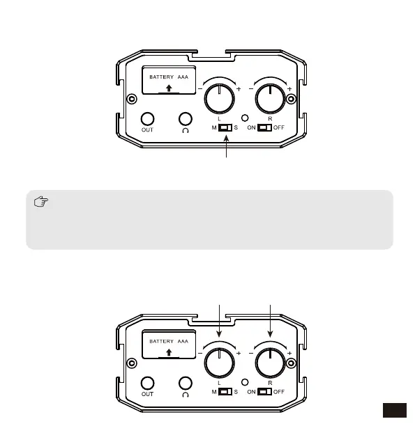 a. 若使用单只麦克风或一个声道进行录音时,请将开关拨动至‘M’单声道
