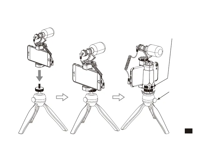 smartphone clamp locking screw, and adjust to the suitable angle for shooting.