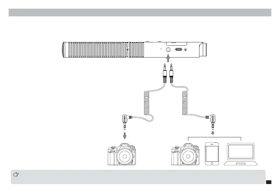 Connect the shotgun microphone to the camera/smartphone/computer through the 3.5mm audio cables