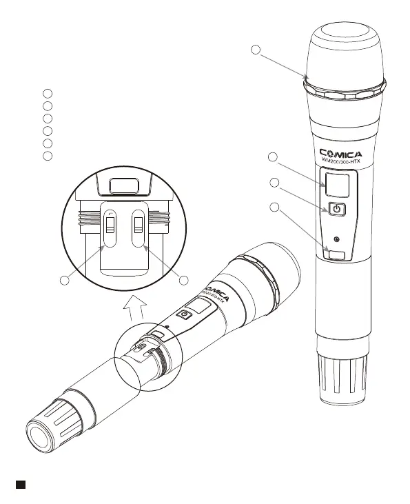 Comica CVM-WM200 - Hand-Held Transmitter (HTX) View and Parts Identification