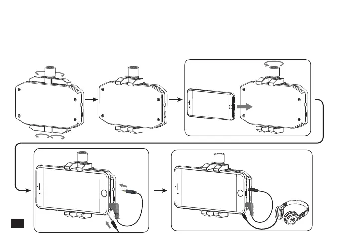 1.Rotate the four clamps, then adjust the screw to appropriate height, install the phone