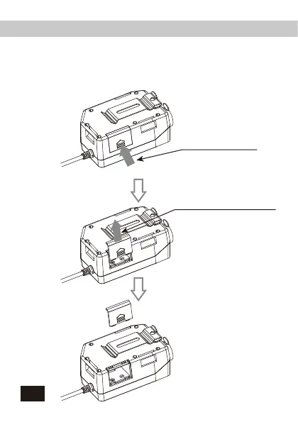 按下电池盖并朝箭头方向打开,按对应的正负极安装9V电池