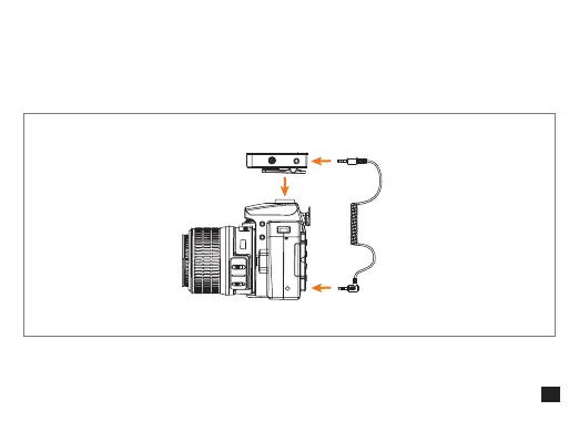 Hold the receiver through the belt clip to the camera's hot shoe mount, then connect the receiver