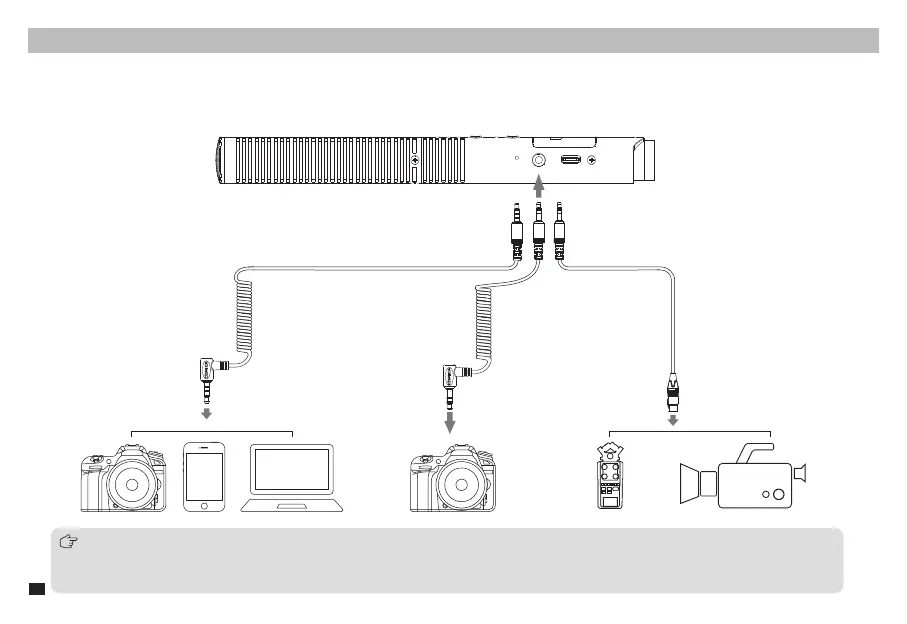 音频连接线连接枪麦和相机/手机/电脑,或通过
