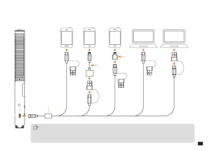 2. When using with Lightning interface devices, please prepare a USB-Lightning adapter/cable that