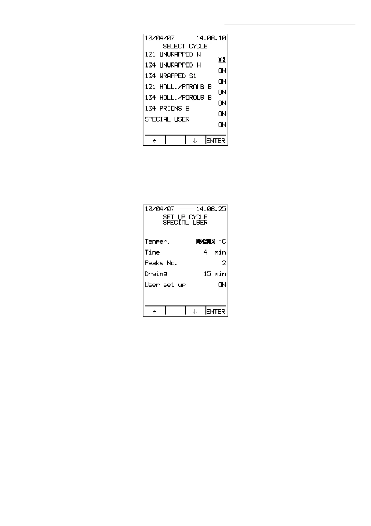 If the SPECIAL cycle is set to ON, you will be shown the screen for setting the values for