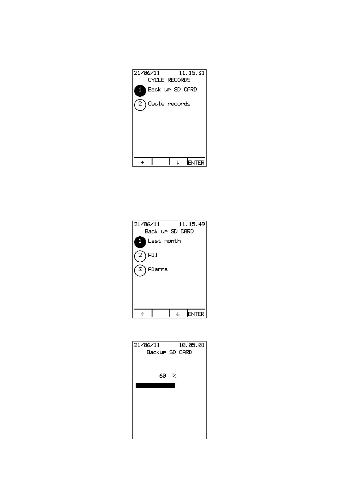 Press ENTER to start the data BACK UP; on the display you will see a progress bar: