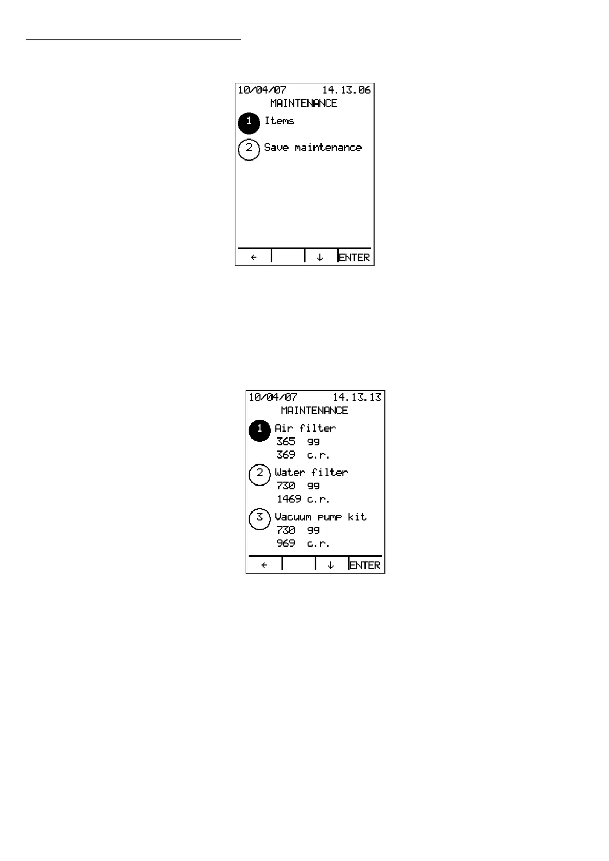 gasket), the ENTER key is activated to record a replacement. Press ENTER to display: