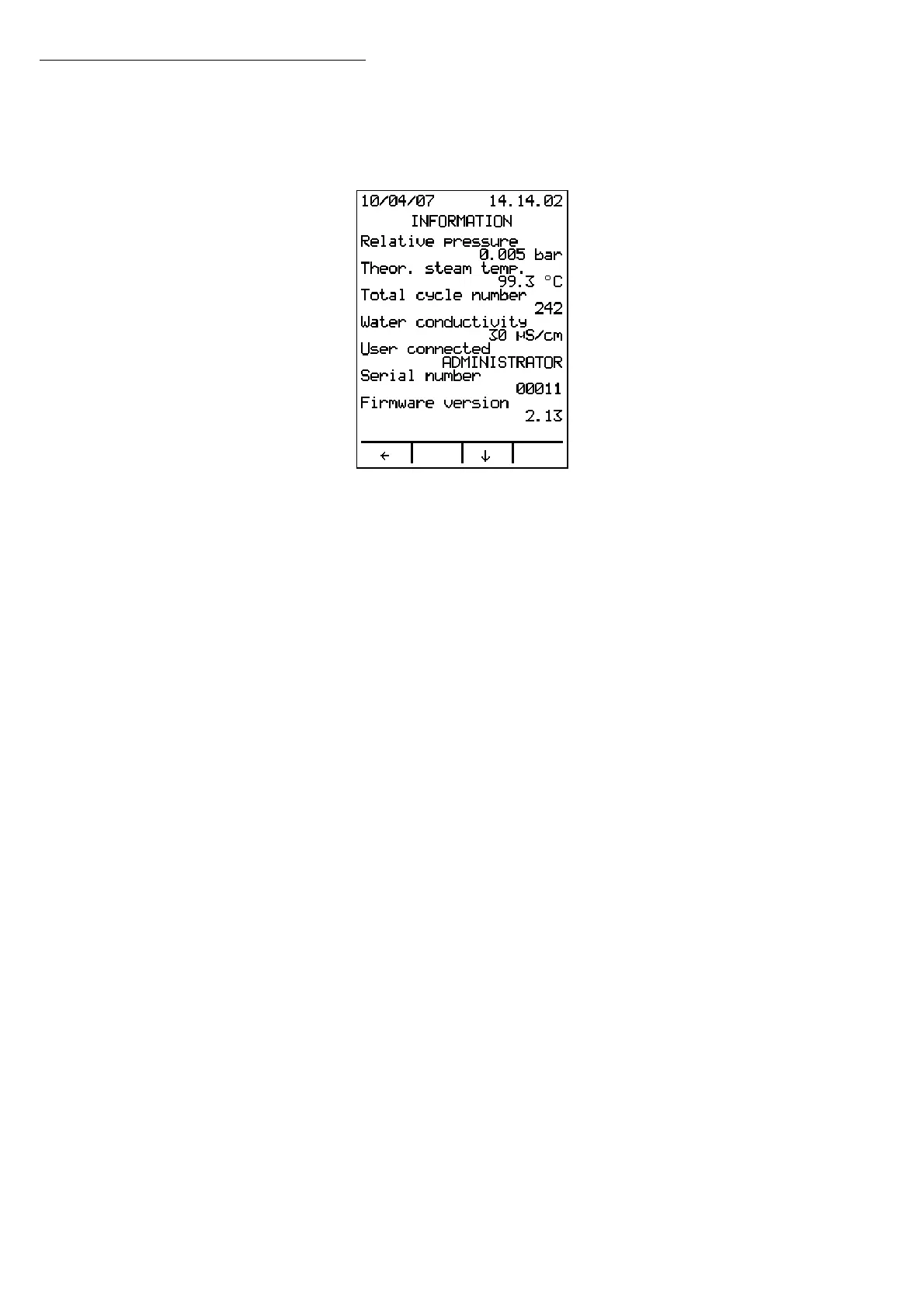 • Water conductivity of last load (only if automatic fill is available and enabled)