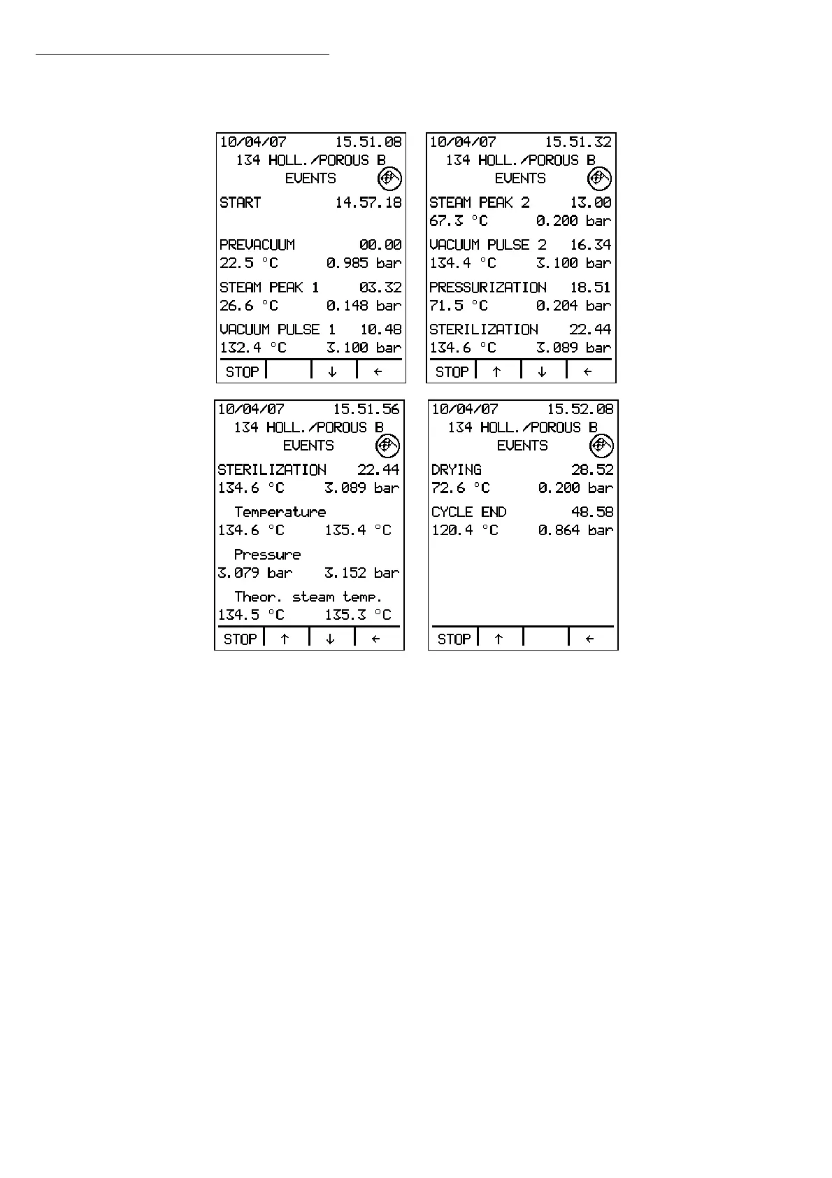name, the time the phase began, the temperature, and the pressure of the sterilization