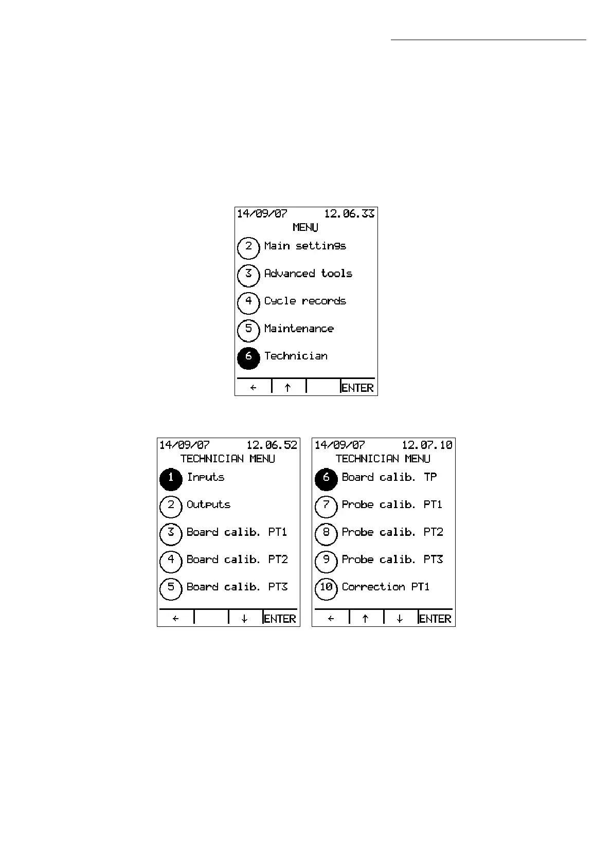 In STAND BY mode, press MENU and use the ↑↓ arrows to select the Technician Menu