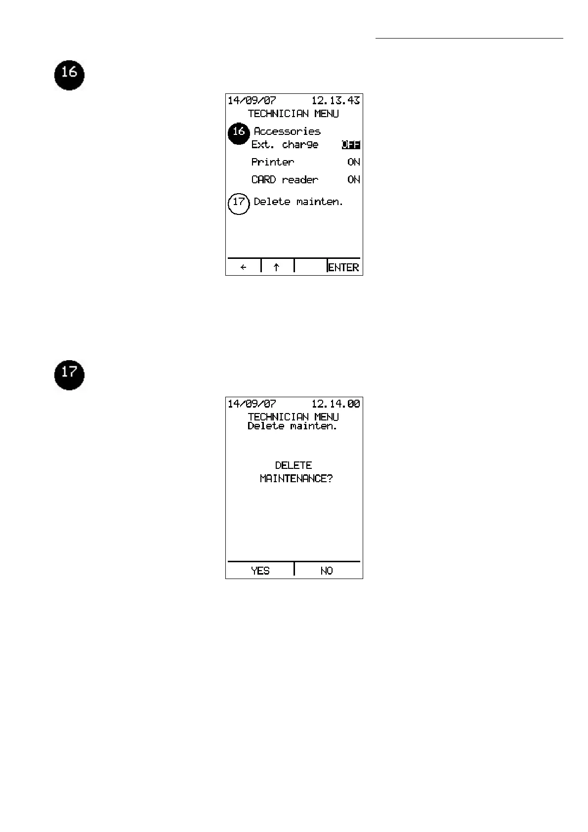 Press NO to keep the maintenance log and go back to the Technician Menu.
