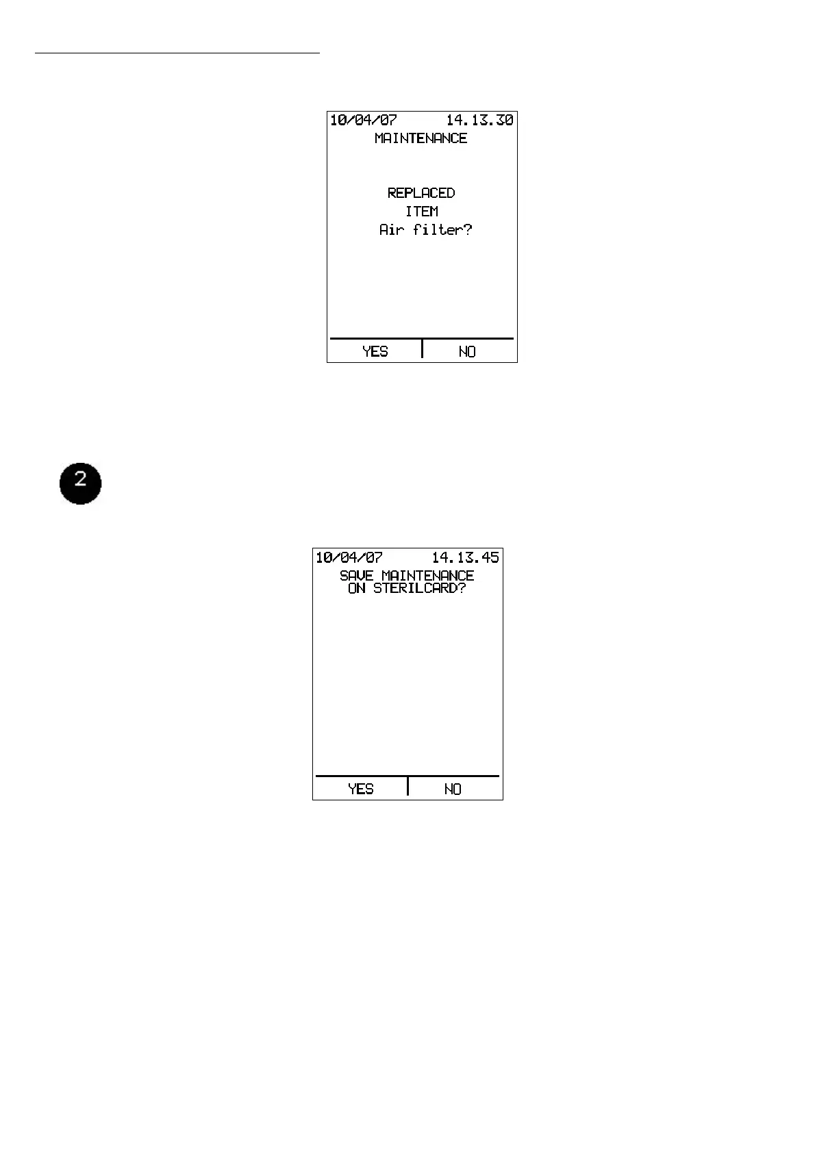 Press YES to store the maintenance operation on the inserted SterilCard 06. The archive