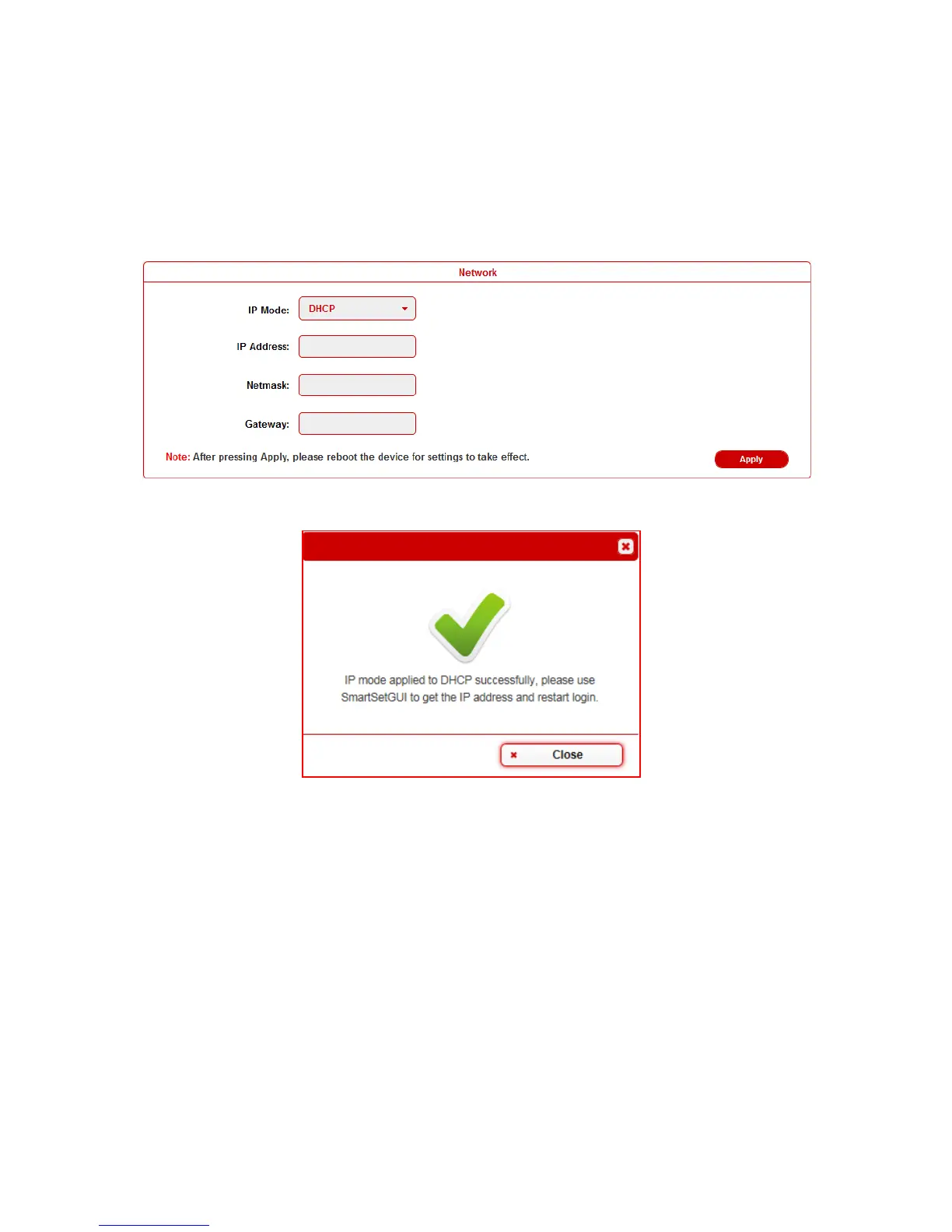 When users choose DHCP and click Apply:
