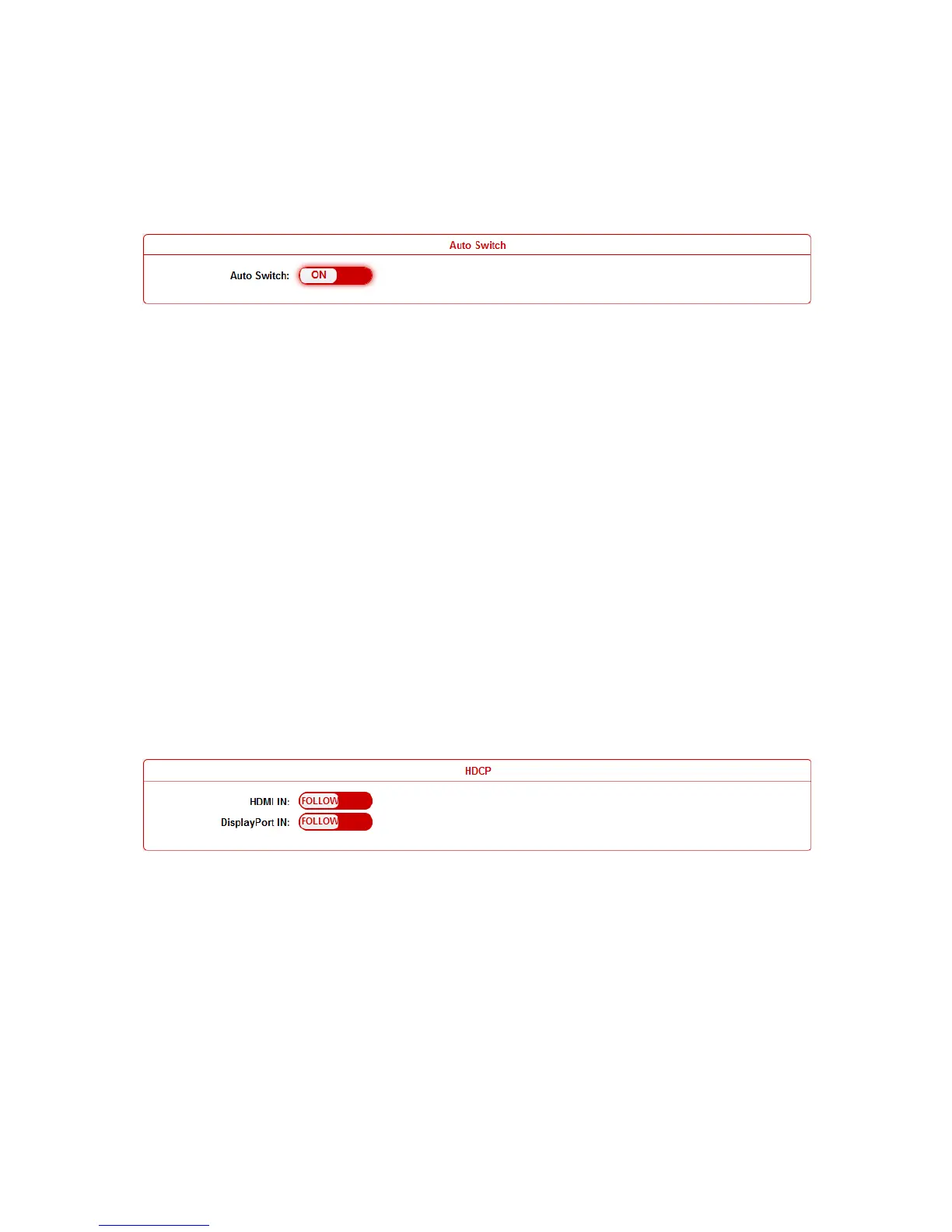 Users can set the HDCP ON or OFF for both HDMI and DisplayPort