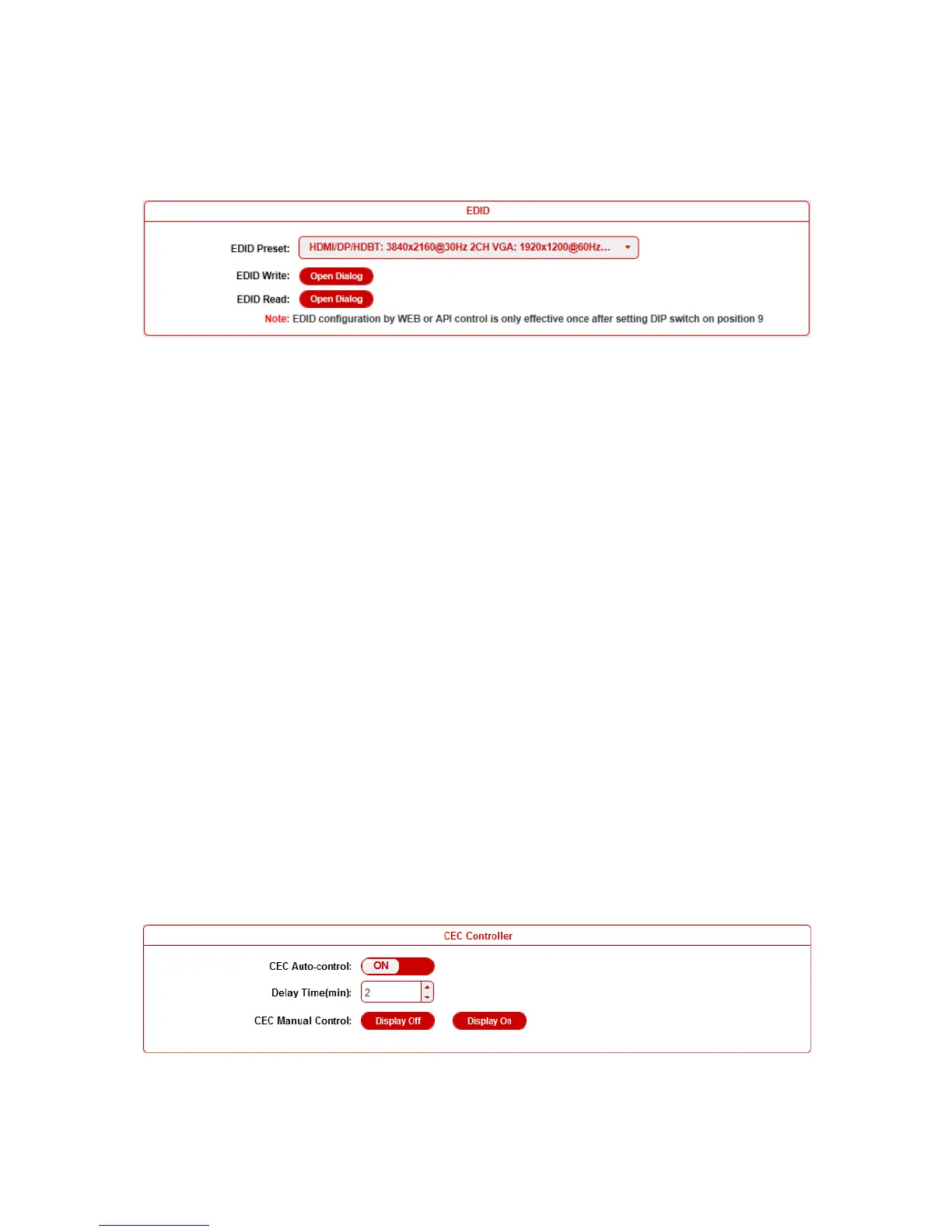 To set the EDID by WEB GUI, adjust the EDID switch to Position 9