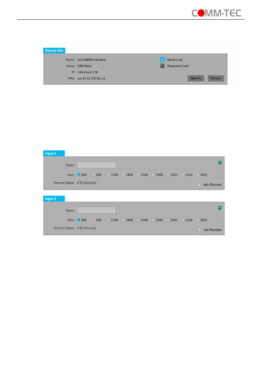 Dante Lock: Reports the status if Dante device is locked in Dante Controller.