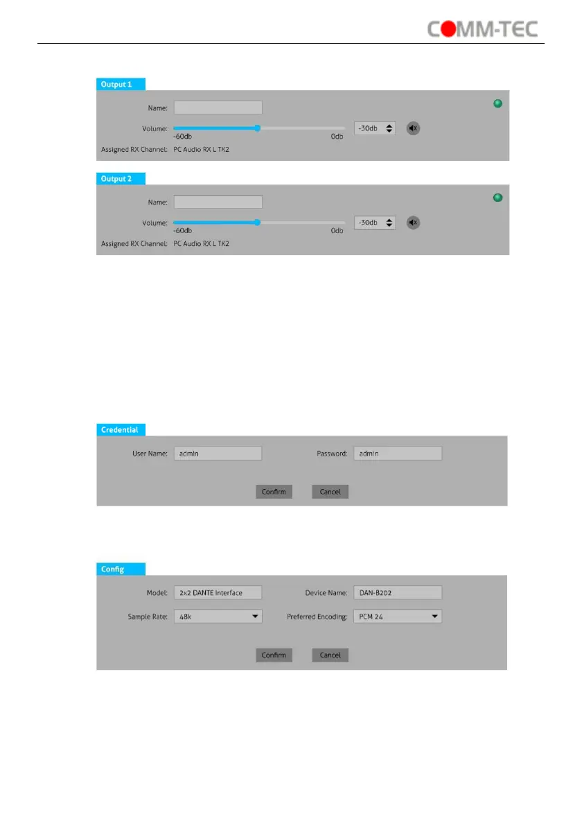 Name: Reports the Dante receiver channel name for corresponding analog output and