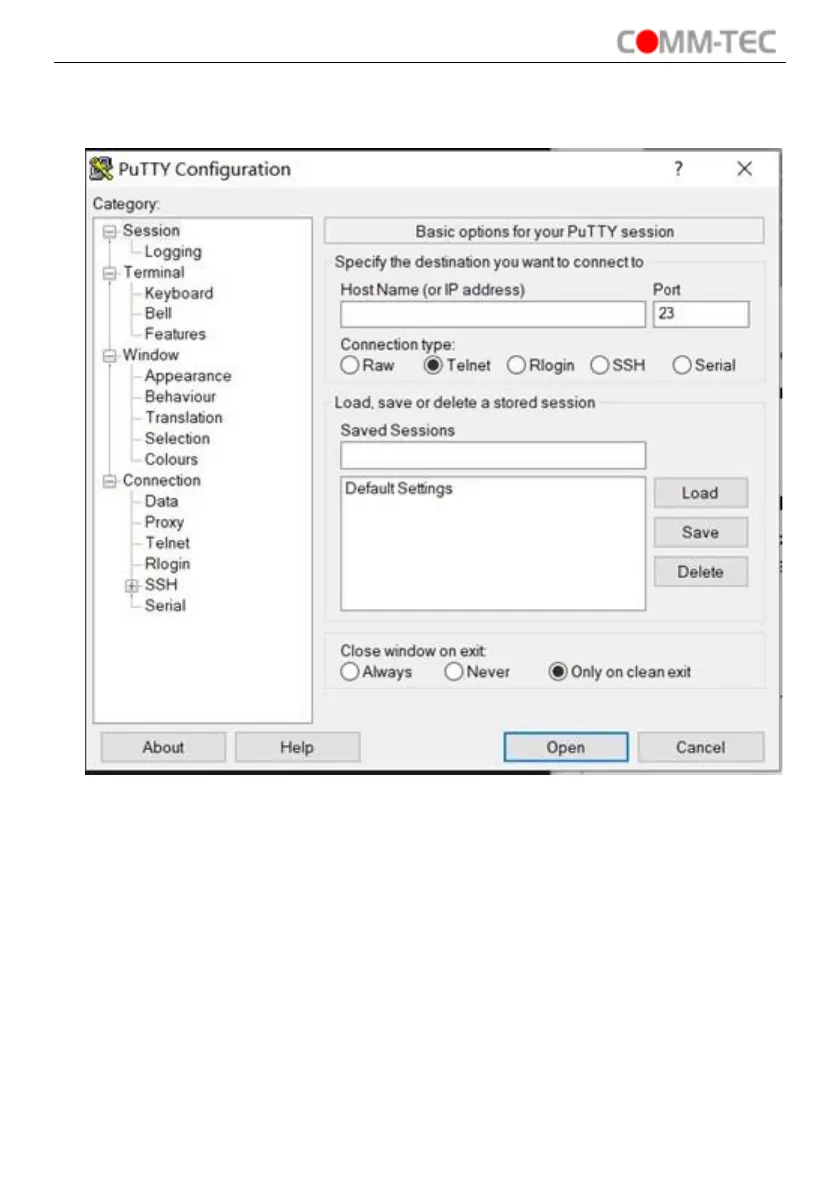 Telnet connection type, then click the open, and a new window will pop up. Then the