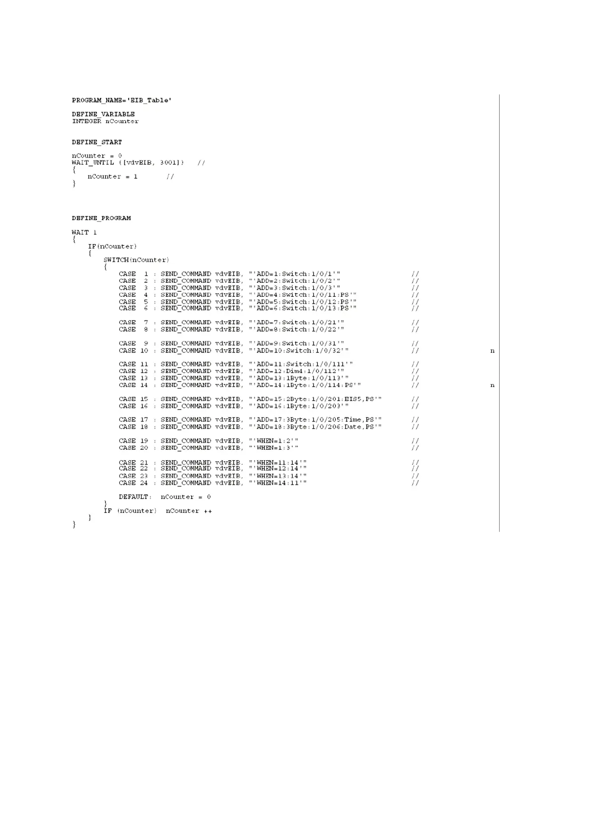 Comm-Tec EIB - Example 2 - Structure of EIB Table with SEND_COMMANDS