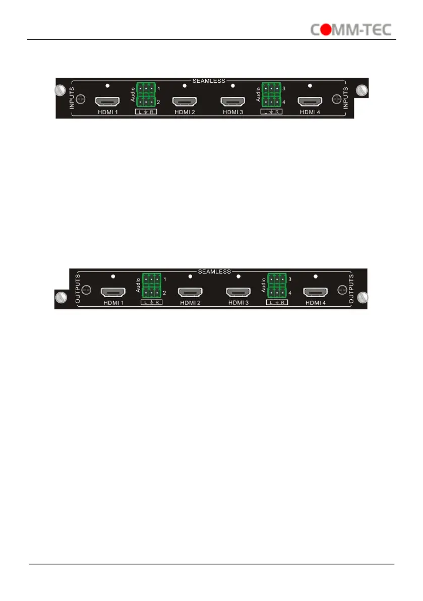 1080P seamless HDMI input card with 4 HDMI and 4 external L+R audio ports.