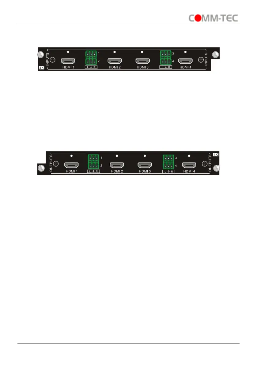 4K HDMI output card with 4 HDMI, and 4 external L+R audio ports.