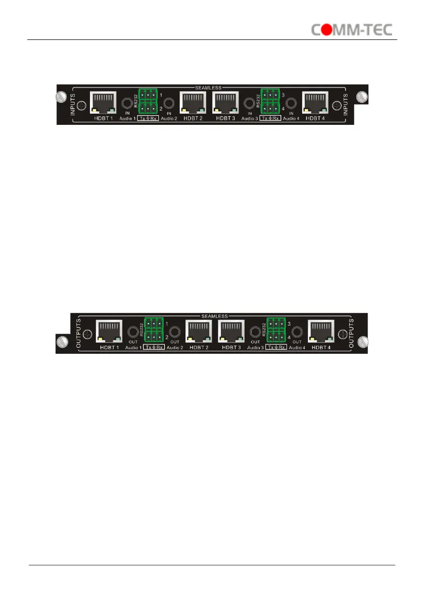 1080P seamless HDBaseT input card with 4 HDBT, 4 RS232 and 4 external stereo