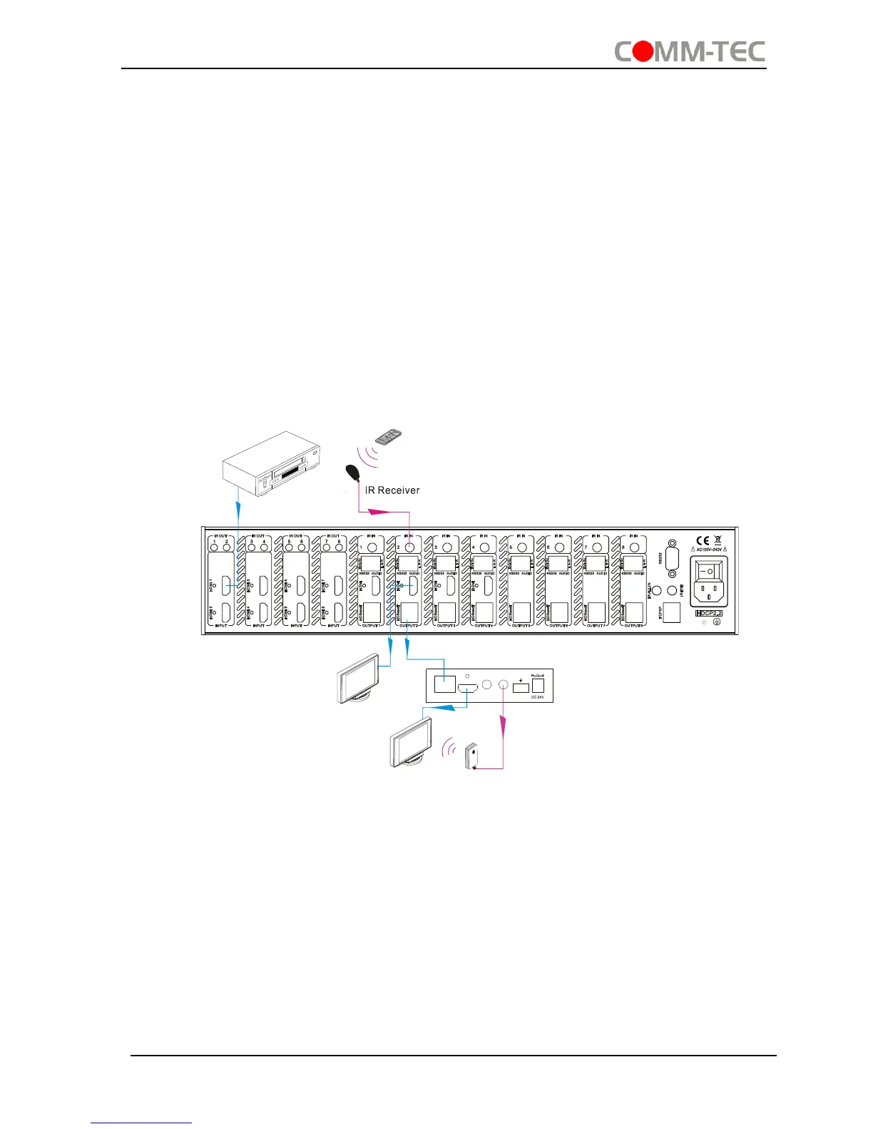 Connect an IR receiver with carrier to the IR IN port of 4K HDBaseT 8x8 Matrix