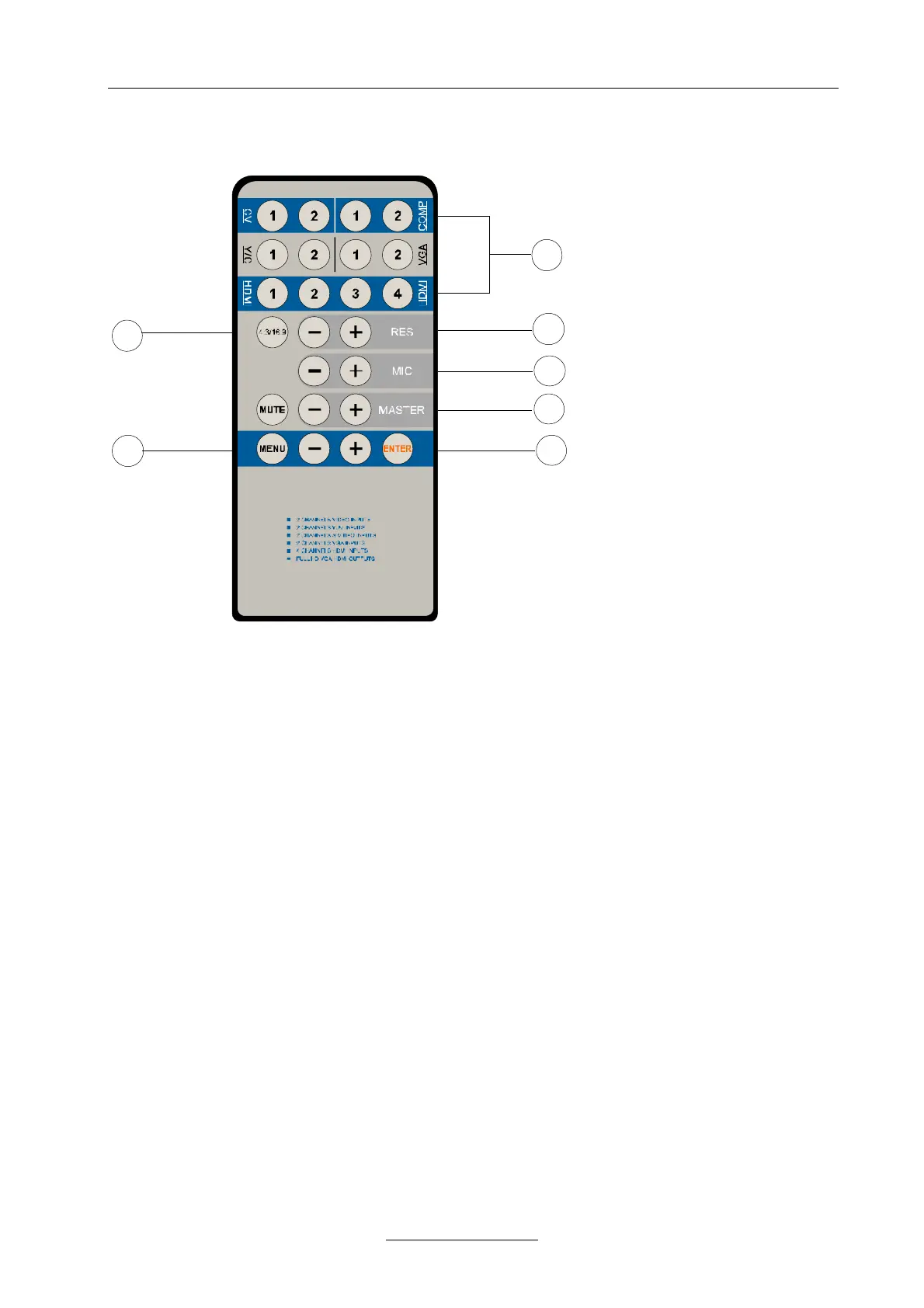channels (E.g. long-press 1/2 button to choose HDMI (DVI) channel 1/2 video signal + Y/C channel