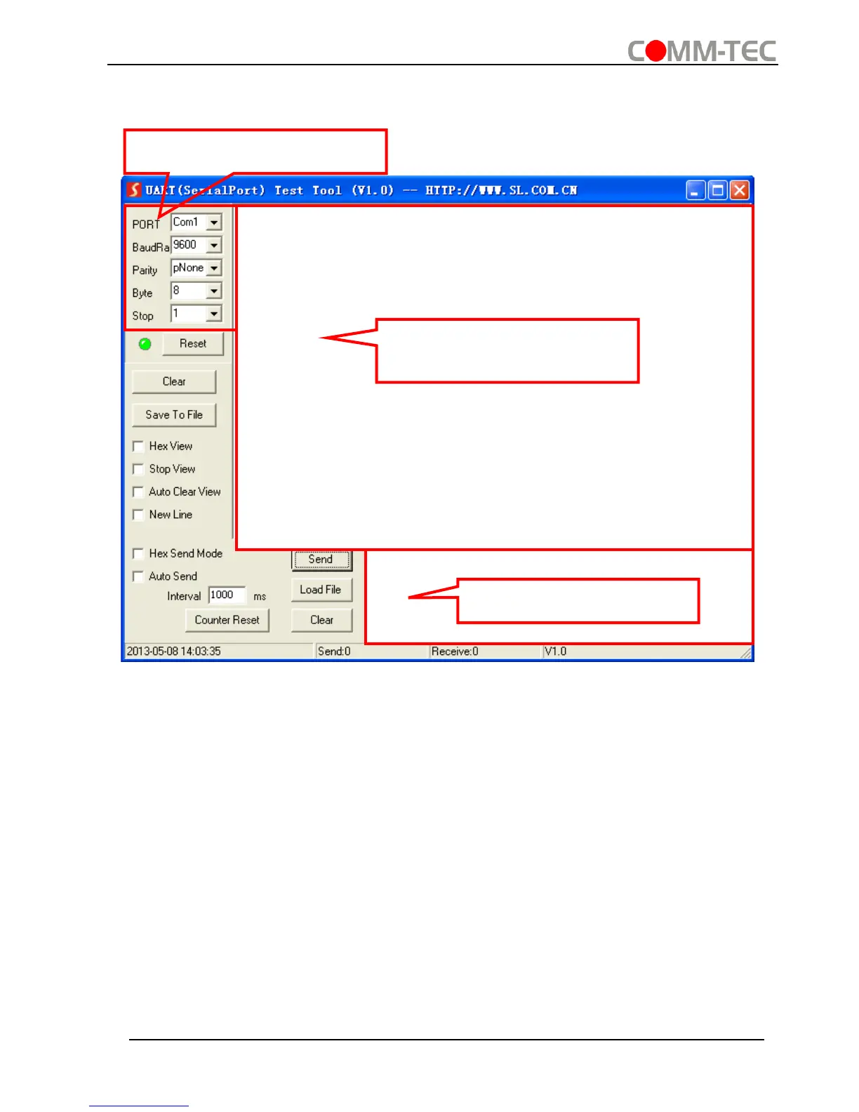 Please set the parameters of COM number, bound rate, data bit, stop bit and the parity