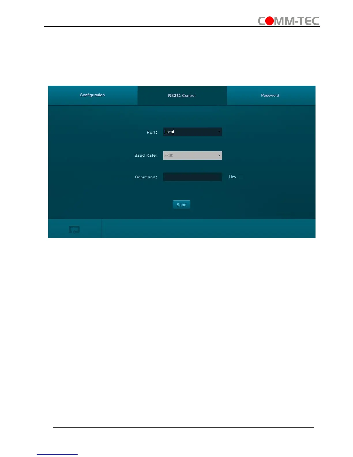 Click RS232 Control on the top of interface to enter RS232 control menu shown as
