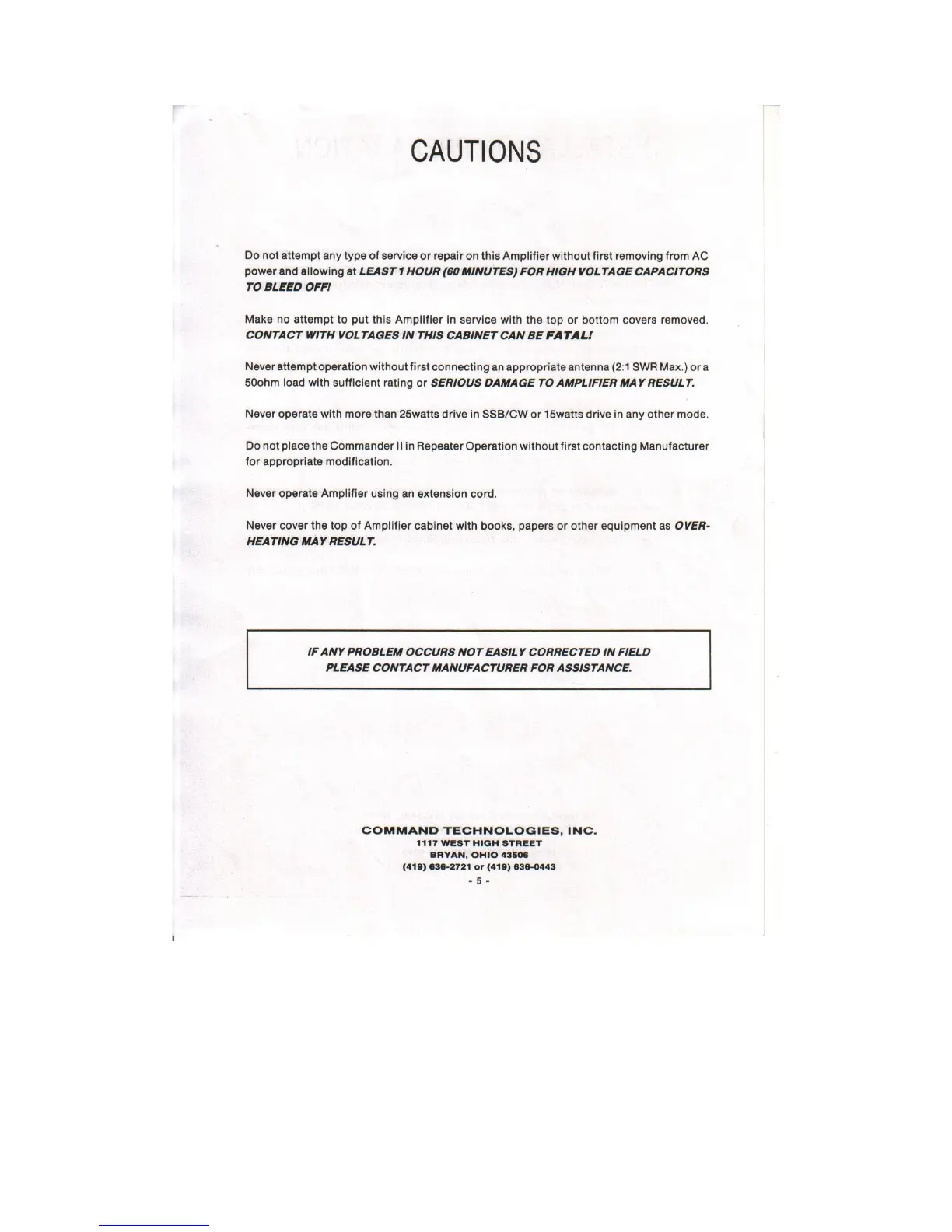 Command Technologies Commander II VHF - Commander II Safety and Cautions; Service and Repair Safety; Critical Operational Warnings; Environmental and Usage Cautions