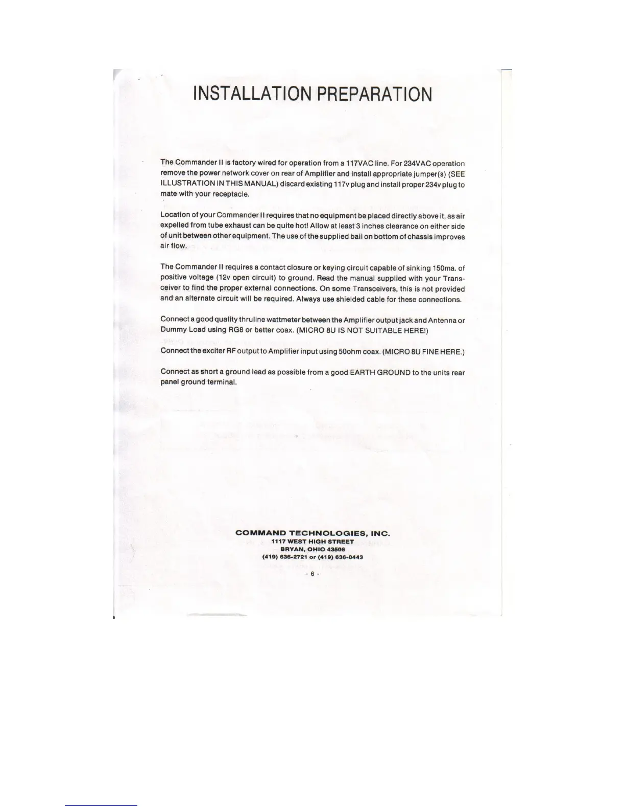 Command Technologies Commander II VHF - Commander II Installation Preparation; AC Power Setup; Placement and Airflow Guidelines; Keying and Grounding Requirements