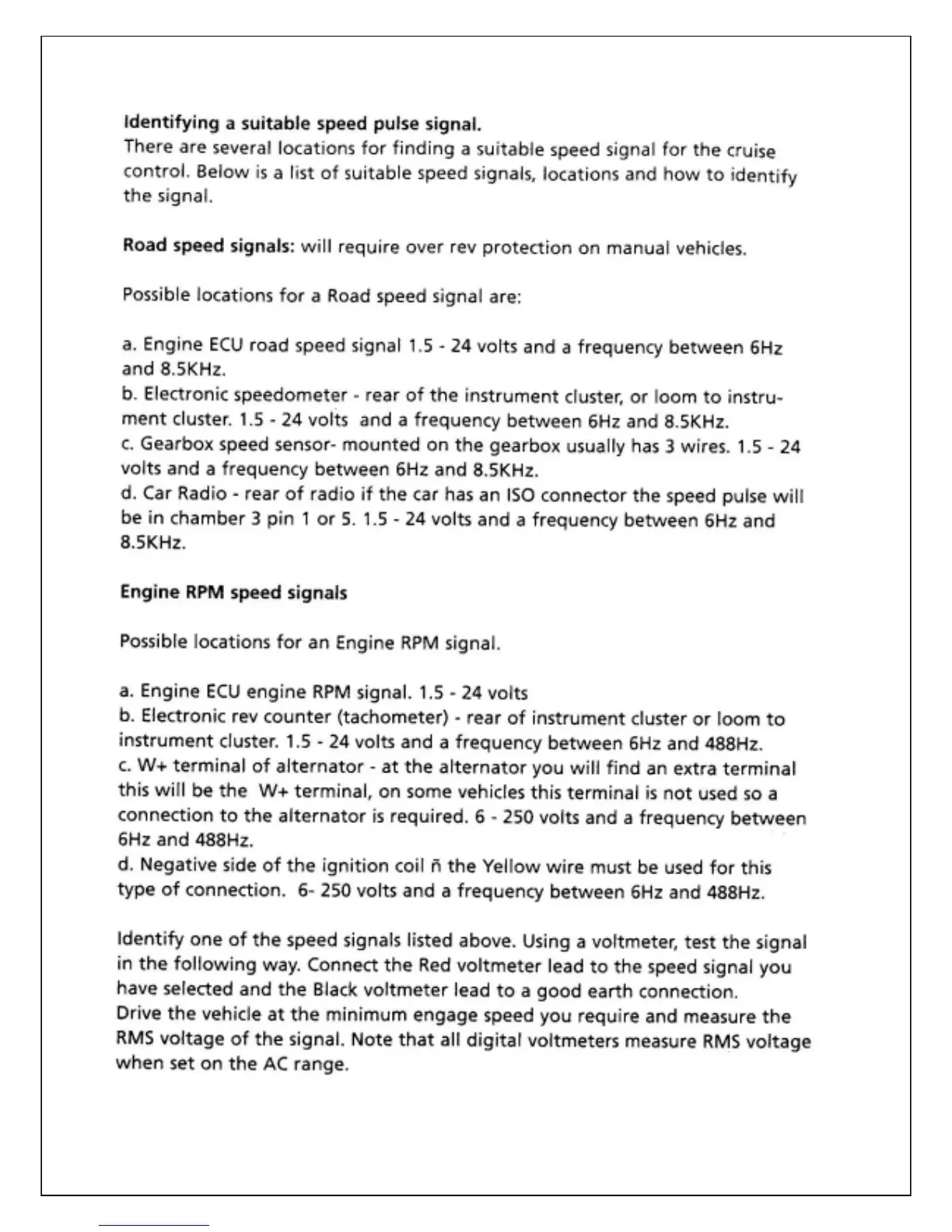 Command Ap 500 - Identifying a Suitable Speed Pulse Signal; Road Speed Signals; Engine RPM Speed Signals