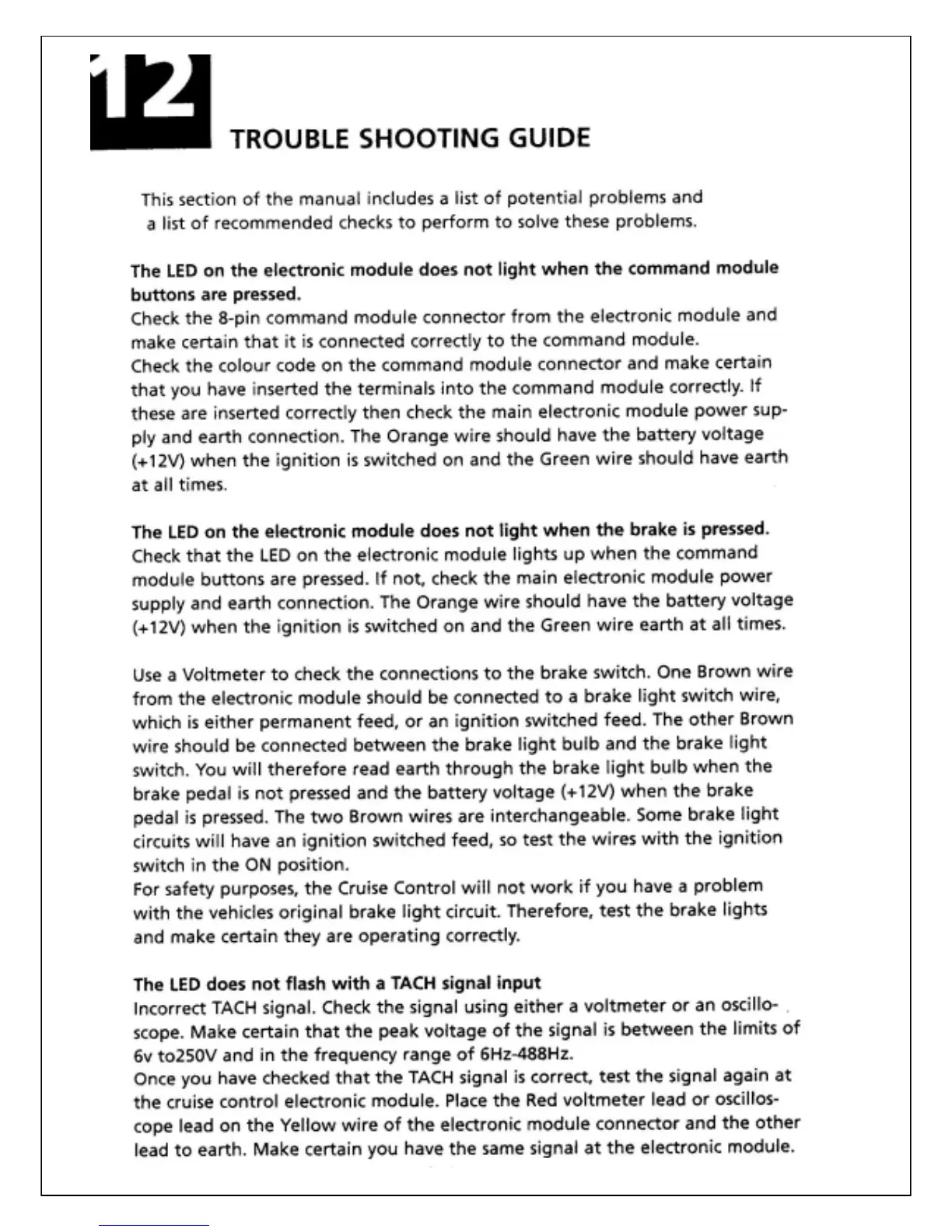 Command Ap 500 - Troubleshooting Common Issues; Electronic Module LED Faults; Brake Switch and Circuit Faults; Signal Input LED Flash Errors (TACH)