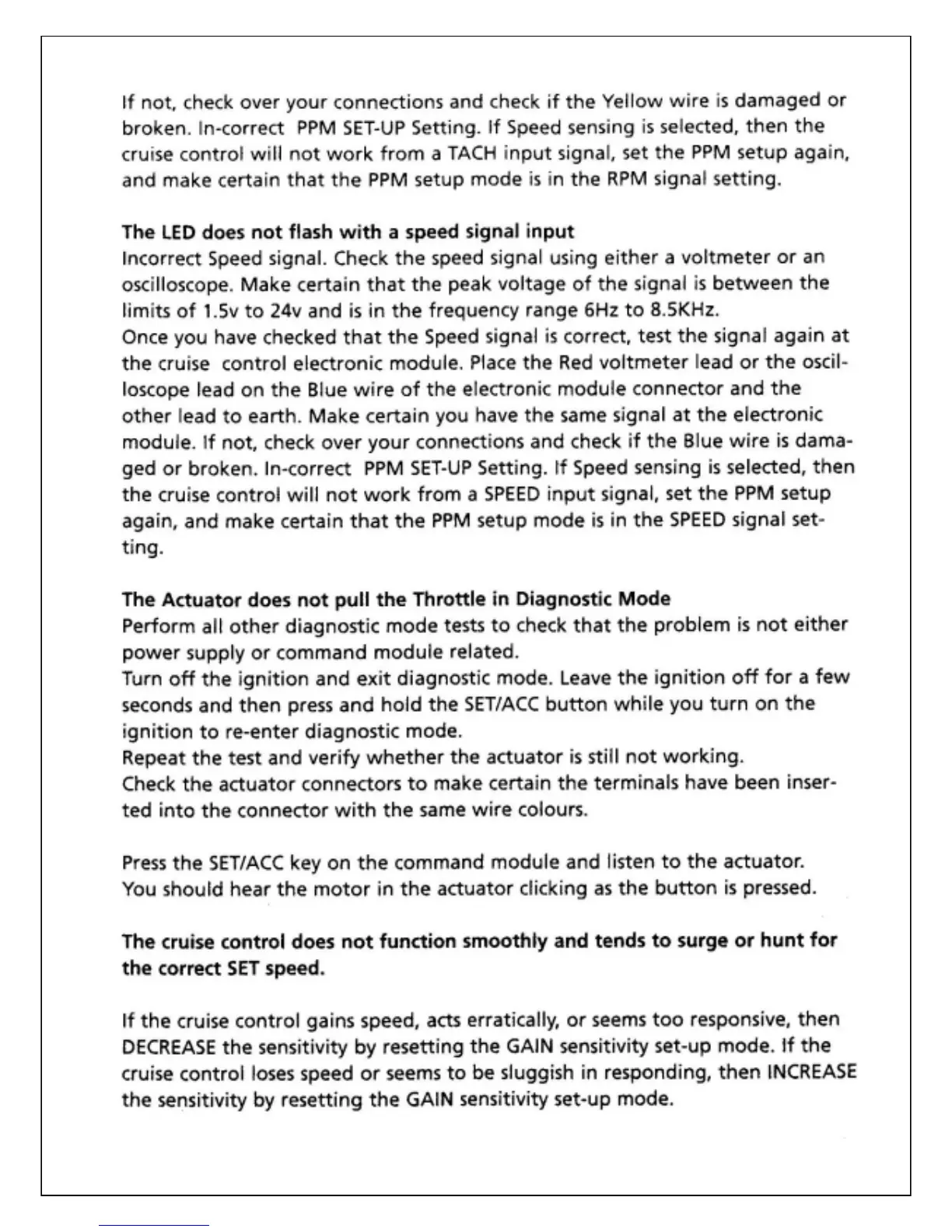 Command Ap 500 - Advanced Troubleshooting Scenarios; Signal Input LED Flash Errors (Speed); Actuator Response Failures; Cruise Control Surging or Hunting