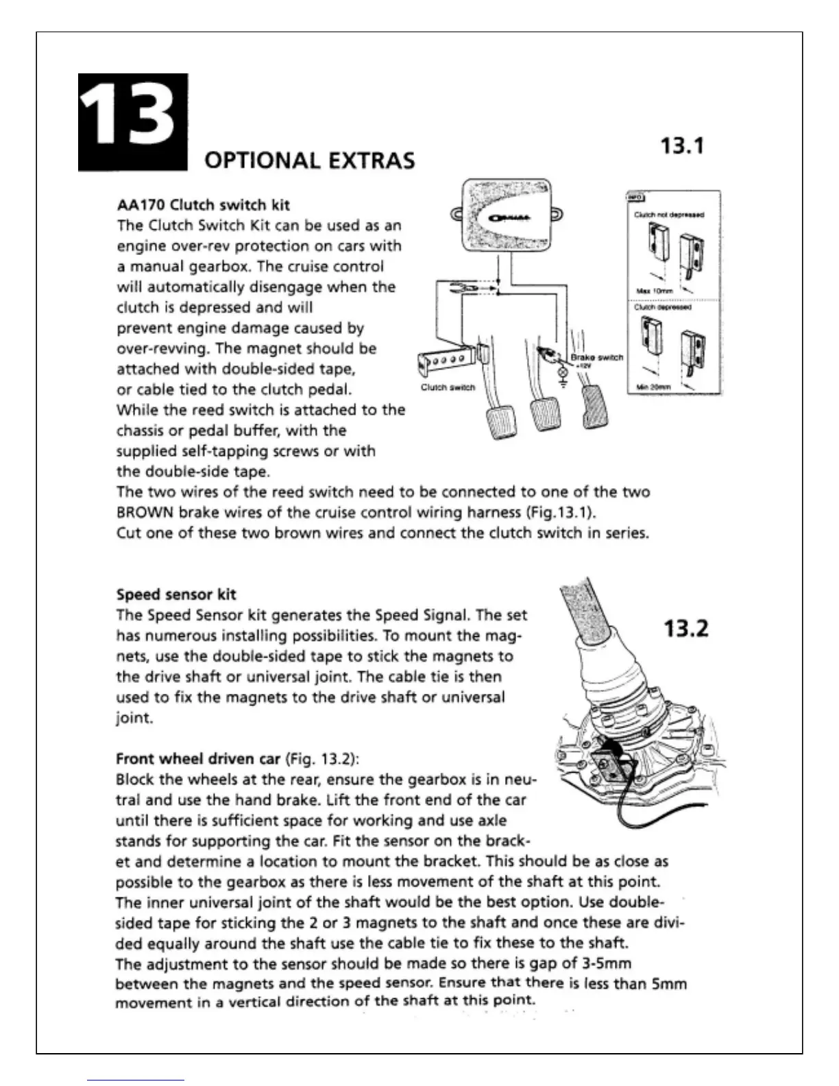 Command Ap 500 - Optional Extras; Clutch Switch Kit; Speed Sensor Kit; Front Wheel Driven Car